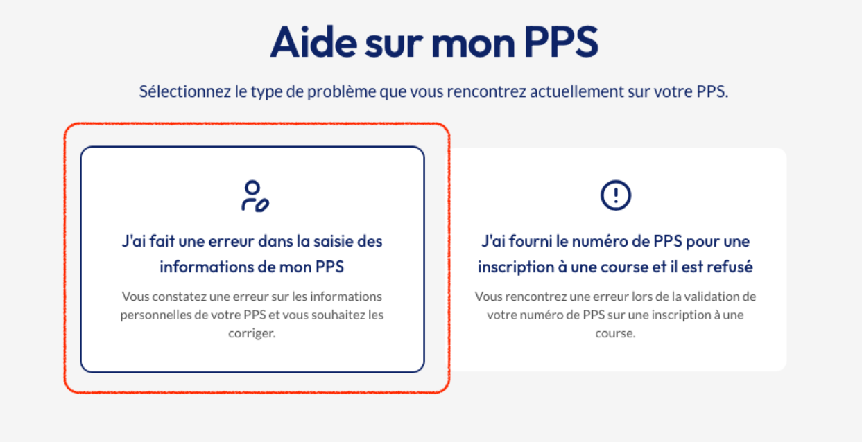 Sélectionnez le choix "J'ai fait une erreur dans la saisie des informations de mon PPS".