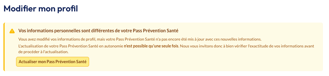 Si vous constatez une erreur sur votre Pass Prévention Santé, vous devez mettre à jour les informations concernées dans votre profil sur votre espace PPS.